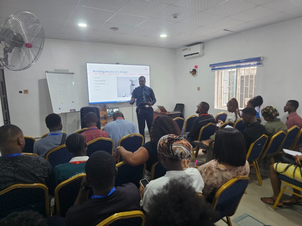 Below are pictorial excerpts from our first session today, titled: BRANDING FOR TECHIES, and was facilitated by Mr. Simeon Taiwo.